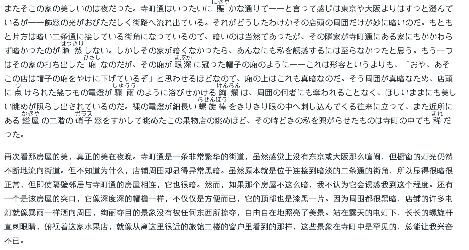 book | 窓をすかして眺めたこの果物店の眺めほど、その時どきの私を興がらせたものは寺町の
