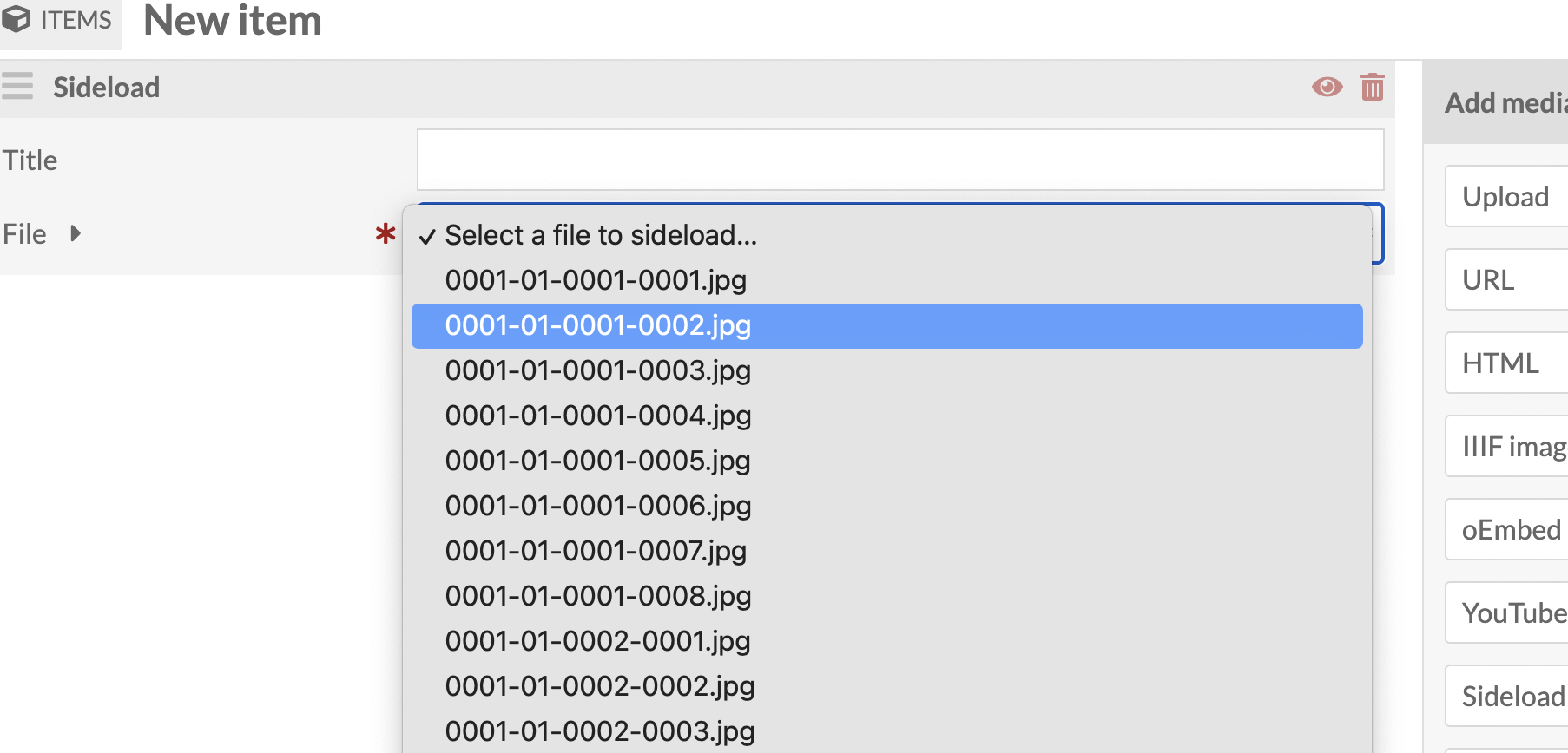 預設做法在建置Item時,切換到Media分頁時,會在右側看到File Sideload選項(如圖)