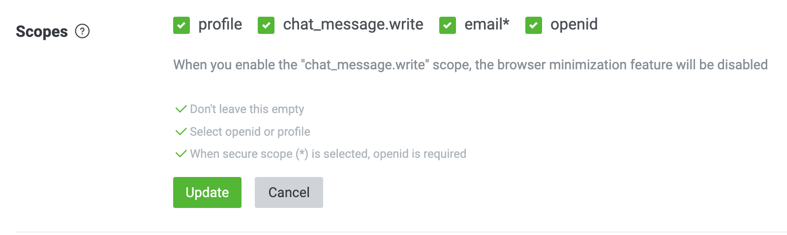 使用者必須登入才能使用,分為對自己和對其他人。要先打開LIFF的Scopes權限(chat_message.write),並且使用者在登入時要授權。