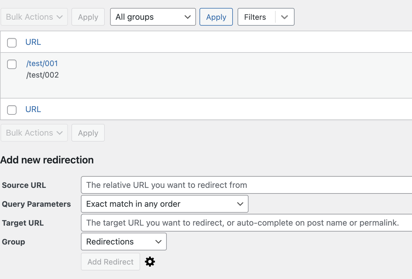 在Redirects分頁中可以進行個別的轉址設定,以下是每個欄位說明: